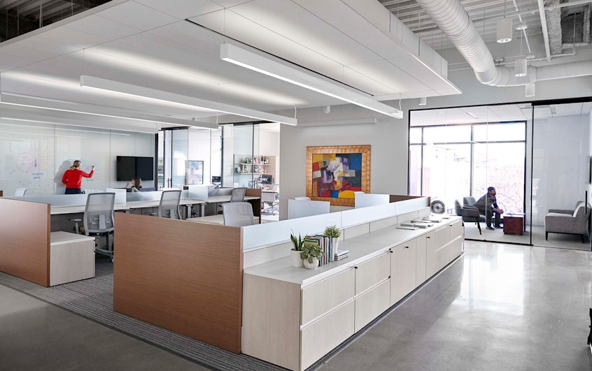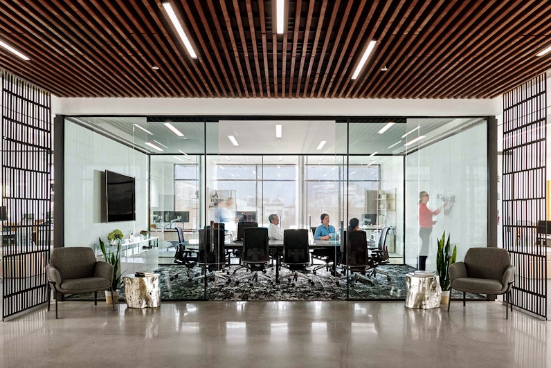 This office space set out to encourage collaboration and relationship between the three companies and to blend their cultures and celebrate their values. The team was also challenged to create a home for one partner’s art collection which was previously scattered across multiple locations.