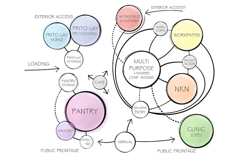 OMNIPLAN’s design created shared educational spaces that serve more than one program function. These shared areas also provide teaching and production kitchens that enhance and support the effectiveness of nutrition and chronic disease management efforts, as well as the social enterprise and employment training.