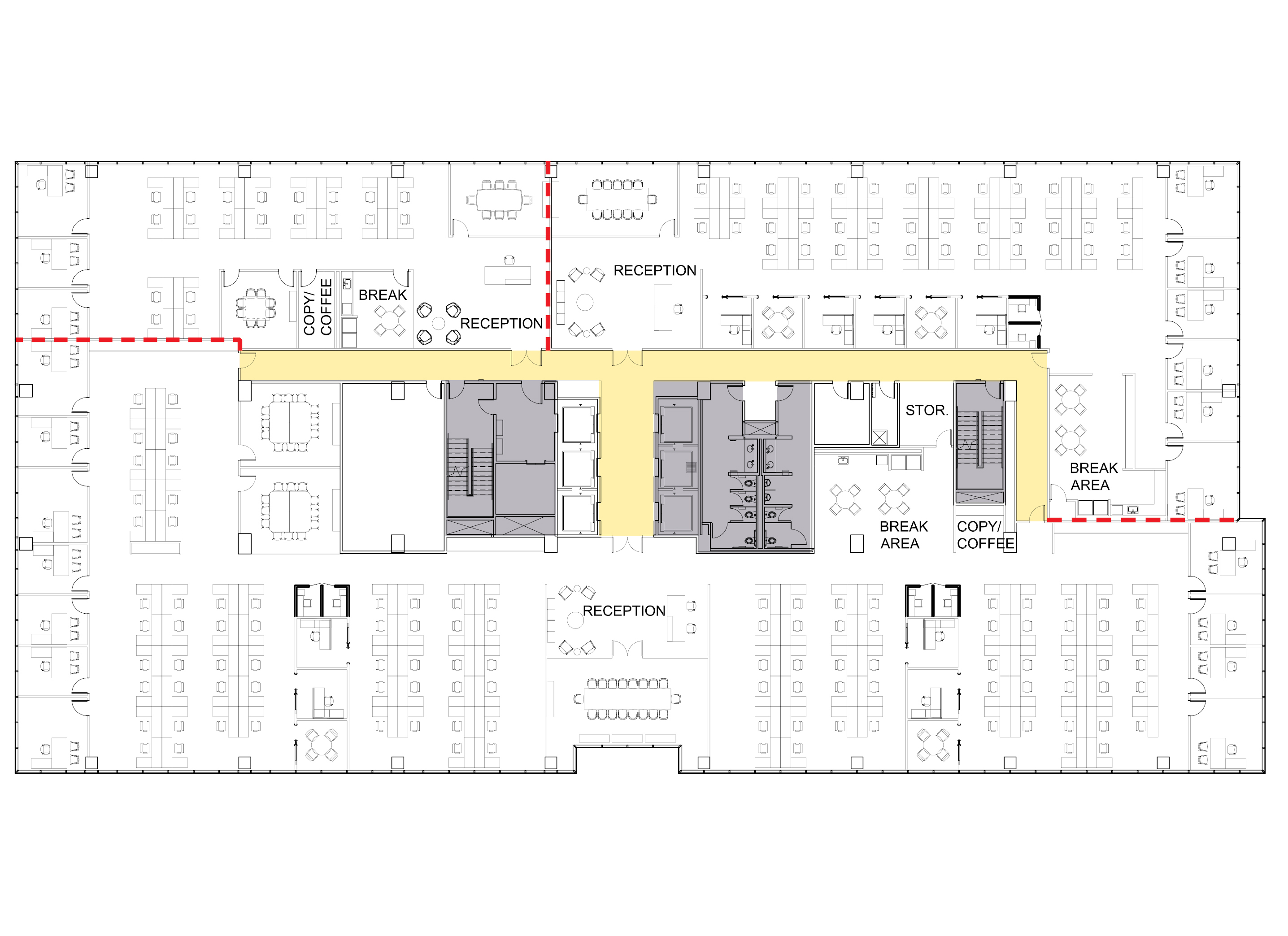 Each level of office space has a 13’-6” floor-to-floor height and a floor-to-ceiling dimension of 9’-0”. The tower will have six elevators that service all floors, and two fire service elevators (one service + one swing) that also serves all levels.