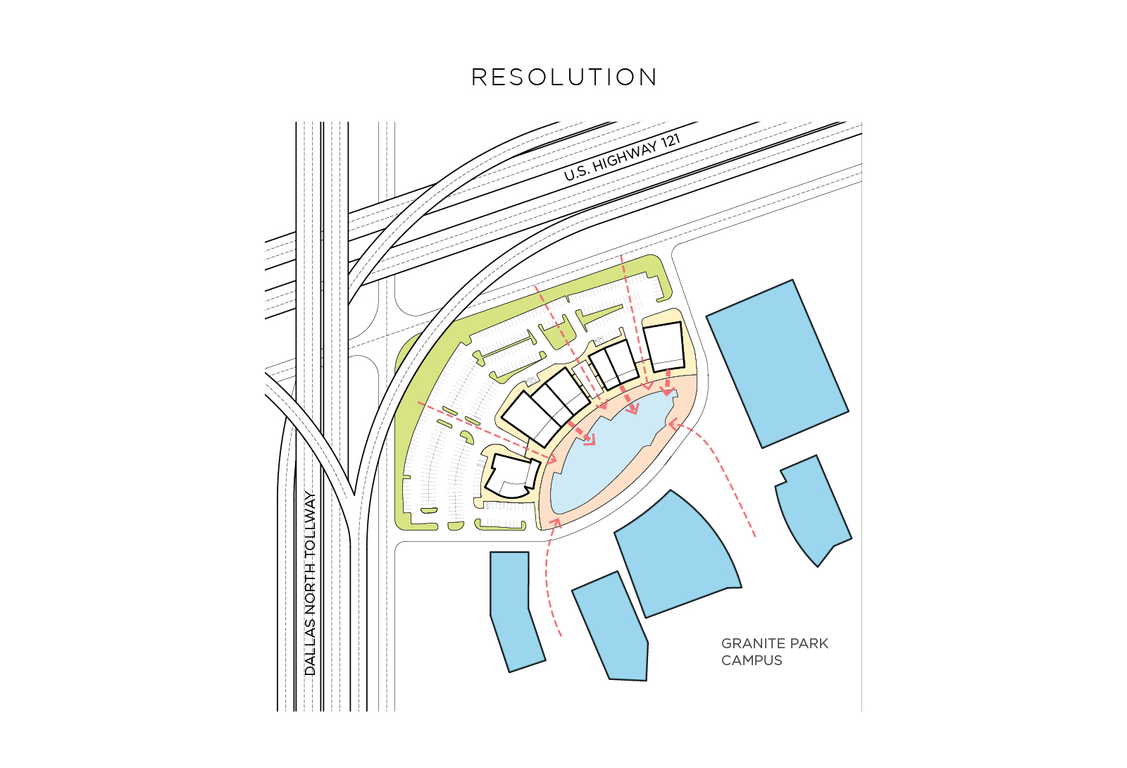 Centered on an existing retention pond, this restaurant park serves the adjacent Granite Office Park as well as the surrounding neighborhoods. With its back to a major highway intersection, the retention pond was repurposed to provide a focal point for restaurant patrons and to serve as a backdrop for live music.