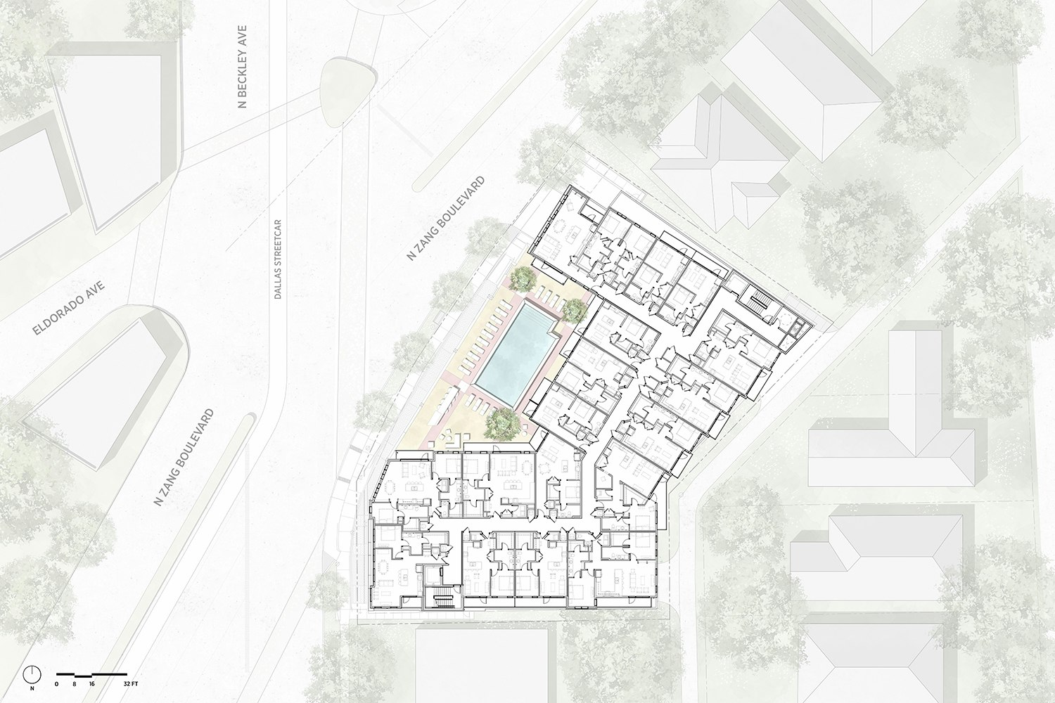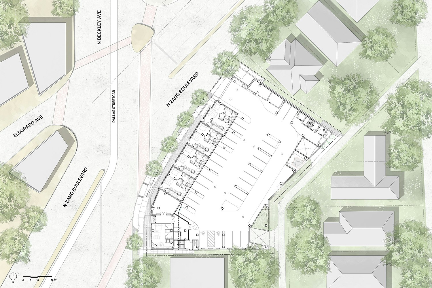 Working closely with our client, Larkspur Capital Partners, Zang Flats is unique five-story apartment community located near Lake Cliff Park. The building was designed to create a pedestrian-friendly front that provides an inviting entrance while also strategically hiding the parking deck.