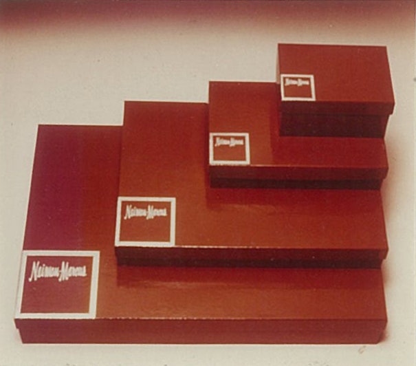 A popular high-end retail company, Neiman Marcus uses packaging required for their business as advertising. In the 1980s, OMNIPLAN Architects was commissioned to update their 20-year-old packaging designs to reflect current fashion trends. The design of a geometric pattern of white squares on a brown field was selected. Neiman Marcus adopted the design for numerous other merchandising promotions, as well.