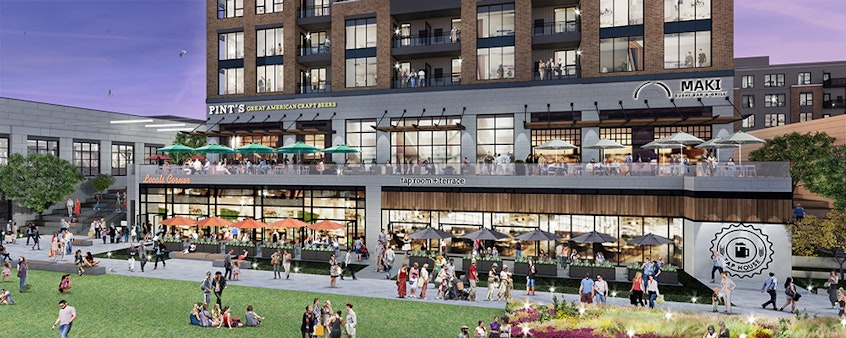 Northbrook Court is undergoing major renovations to their 40-year-old shopping mall. The current anchor department store, Macy’s, will be demolished to make room for the Great Lawn, an open-air plaza as well as a high-end grocery store. Overlooking the new Green Lawn will be 315 luxury multifamily units as well as several new restaurants and retail tenants. Underneath the residential units will be a parking deck that will hold 434 cars. Later phases include a full renovation of the mall interiors and entries.