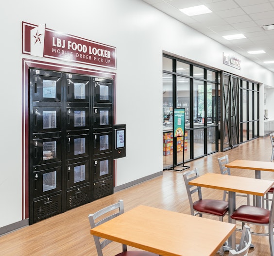 The Den offers various dining options for students living on campus, including several restaurants and seating areas for students to eat, work, or socialize. The renovation project revamps the kitchen area and makes the space more inviting for students to take advantage of the new grab and go food stations. There is also a new seating area to make space for students to plug-in their phones and laptops.