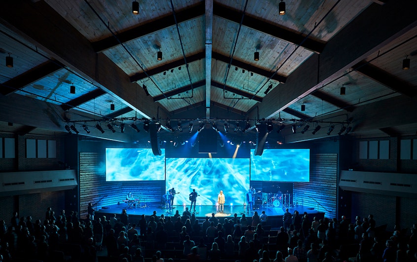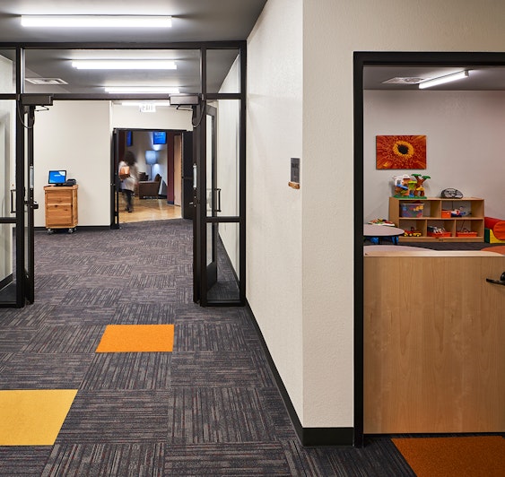 This project was a complete renovation of the existing classrooms, sanctuary and entry area. The classrooms were expanded to accommodate for existing needs as well as future growth. The Sanctuary now has moveable seats and a flat stage to make room for Watermark's large band. The entry now has an outdoor area for gathering and seating with new and inviting landscaping.